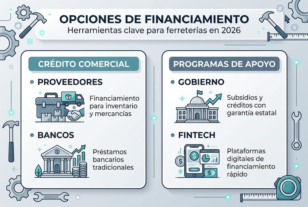 | Opciones variadas | Existen líneas de crédito, programas estatales y apoyos para todo tipo de ferretería. |