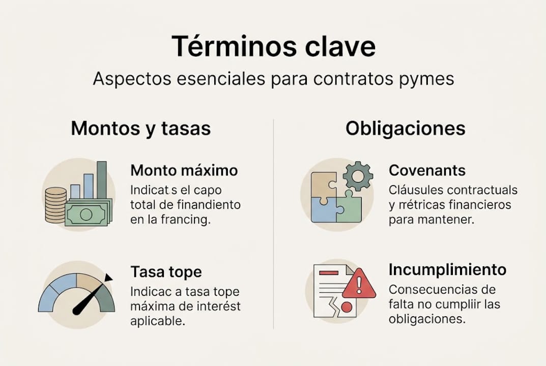 - Es fundamental negociar términos como periodos de subsanación, covenants y tarifas para proteger la salud financiera del negocio.